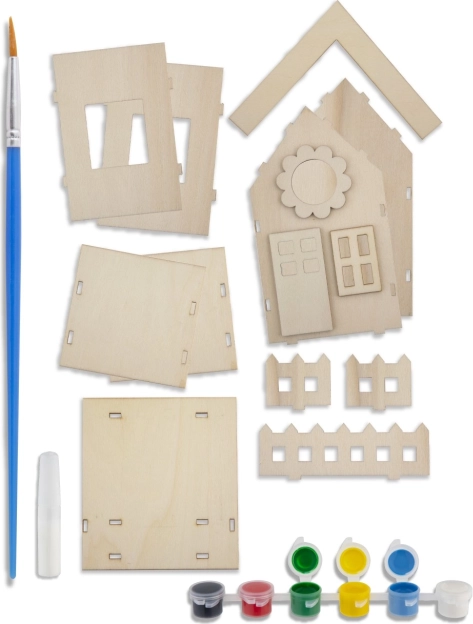 - Kompletny zestaw – elementy drewniane, 6 kolorów farb, klej i pędzelek w opakowaniu.