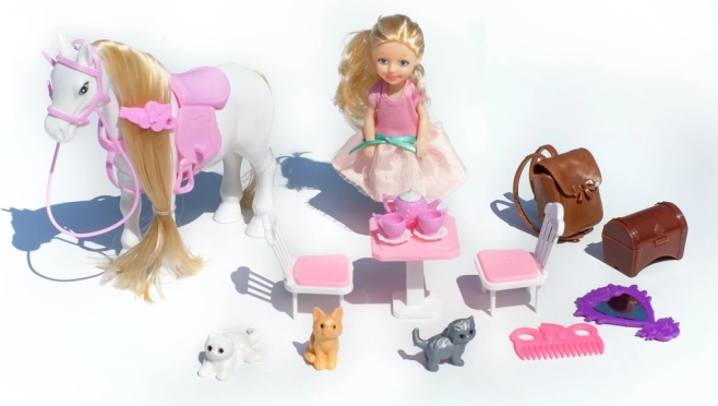 Zestaw do zabawy z lalką, konikiem i kociętami