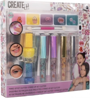 Odkryj zabawną dziecięcą kosmetykę z kreatywnym zestawem CREATE IT! – idealnym dla małych elegantek. Zestaw zawiera 2 lakiery do paznokci, 4 metaliczne błyszczyki do ust, 5 połyskujących cieni do powiek oraz pędzelek dwustronny dla łatwej aplikacji. Doskonały do kreatywnego makijażu, zabawy i rozwijania wyobraźni.