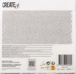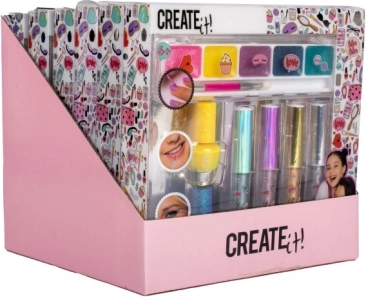 Ten kolorowy zestaw do makijażu CREATE IT! zawiera wszystko, czego dzieci potrzebują do pierwszego, bezpiecznego poznawania kosmetyków. Metaliczne odcienie i połyskujące efekty wyczarują oryginalny look na każdą dziecięcą imprezę i popołudniową zabawę.