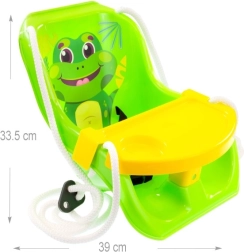 Praktyczna i zabawna huśtawka dla najmłodszych z motywem żaby oferuje tryb 2w1 – z przednią barierką bezpieczeństwa dla małych dzieci oraz możliwością późniejszego użytkowania bez barierki. Wykonana z wysokiej jakości, bezpiecznego plastiku i wyposażona w solidne zabezpieczenie przed wypadnięciem, dzięki czemu dzieci mogą huśtać się wygodnie i bezpiecznie w domu i w ogrodzie.