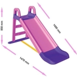 Montaż jest bardzo prosty, konstrukcja lekka i przenośna – zjeżdżalnię łatwo przeniesiesz z ogrodu do pokoju dziecięcego. Maksymalne obciążenie wynosi 25 kg, wysokość z uchwytami 85 cm, a wysokość siedziska 62 cm.