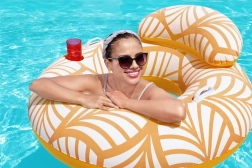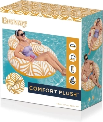 Odpocznij, zrelaksuj się i nabierz nowej energii, ciesząc się luksusowym, aksamitnym materiałem Bestway Comfort Plush Deluxe. Materiał nadaje pływakowi gładką i miękką strukturę, idealną na dzień spędzony przy basenie! Materiał Comfort Plush jest idealny na ciepłe dni, ponieważ sprawia, że powierzchnia pływaka nie nagrzewa się zbytnio pod wpływem gorącego słońca. Po umieszczeniu w wodzie kolory stają się bardziej intensywne, tworząc przyciągający wzrok efekt. Dzięki poduszce możesz relaksować się przez cały dzień, pozostając jednocześnie stylowo i wygodnie! Wbudowany uchwyt na napoje pozwala mieć ulubiony napój lub przekąskę zawsze pod ręką. W konstrukcji zastosowano dwukierunkowy szybkozawór, który zapewnia łatwe i skuteczne pompowanie oraz spuszczanie powietrza. Koło Comfort Plush Deluxe można poza sezonem łatwo złożyć i przechowywać. Ten luksusowy pływak basenowy jest idealny na letnie dni i stanowi doskonały sposób na relaks nad wodą. Niewątpliwą zaletą koła jest to, że wspiera aktywność fizyczną. Włóż je do torby i przygotuj się na wiele słonecznych dni, które będziesz wspominać, dokądkolwiek zaprowadzą Cię letnie przygody.