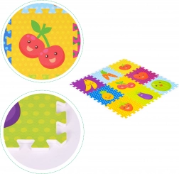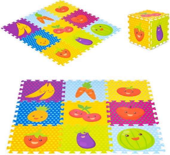 Piankowa mata do zabawy IPLAY została zaprojektowana z myślą o bezpieczeństwie i komforcie dzieci. W zestawie znajdują się różne kartonowe obrazki owoców i warzyw, które nie tylko zdobią, ale także edukują. Mata jest odpowiednia nie tylko do zabawy, lecz także do nauki chodzenia.