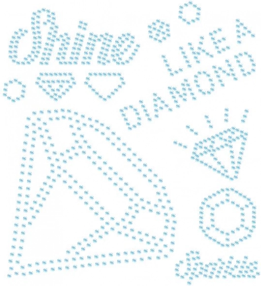 Dekor z drobnych kamyków tworzy napis oraz geometryczne „diamenty”, które rozświetlą każdy element garderoby. Idealny do szybkiej i efektownej personalizacji.