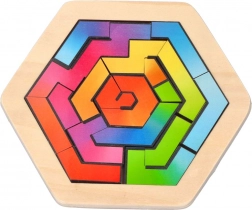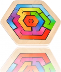 Kreatywne mozaikowe puzzle w okrągłej, drewnianej ramce zachwycą małych i większych konstruktorów. Z 16 kolorowych elementów ułożycie oryginalne wzory według szablonów i własnej wyobraźni. Wspiera małą motorykę, cierpliwość i rozpoznawanie kolorów, wykonane jest z drewna z farbami na bazie wody i można układać je w ramce lub poza nią.