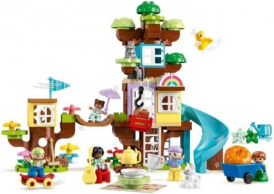 Odkryj przebudowywalny leśny raj na drzewie, który rośnie razem z dziećmi. Zbuduj trzystopniowy plac zabaw w koronach drzew z długą zjeżdżalnią i mostem linowym, zamień go w przytulny domek na drzewie na deszczowe dni albo stwórz dwa domki z ogrodem, w których za pomocą uroczej wciągarki będziesz podnosić owoce.