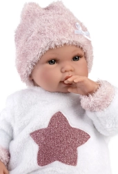 Dzięki przegubowo mocowanym rączkom i nóżkom lalka jest ruchoma i potrafi stabilnie siedzieć. W zestawie znajduje się ozdobny smoczek oraz baterie do natychmiastowej zabawy. Do lalki łatwo dokupisz oryginalne ubranka LLORÉNS w rozmiarze 35–36 cm.