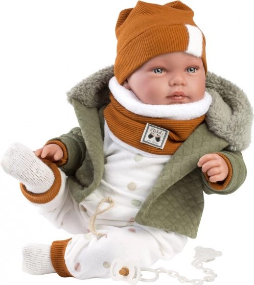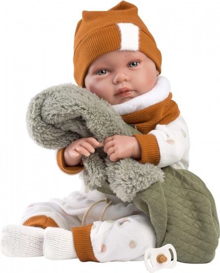 W zestawie znajduje się smoczek jako dodatek oraz wysokiej jakości ubranko; lalka jest kompatybilna z oryginalnymi ubrankami Llorens 43–45 cm.