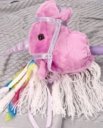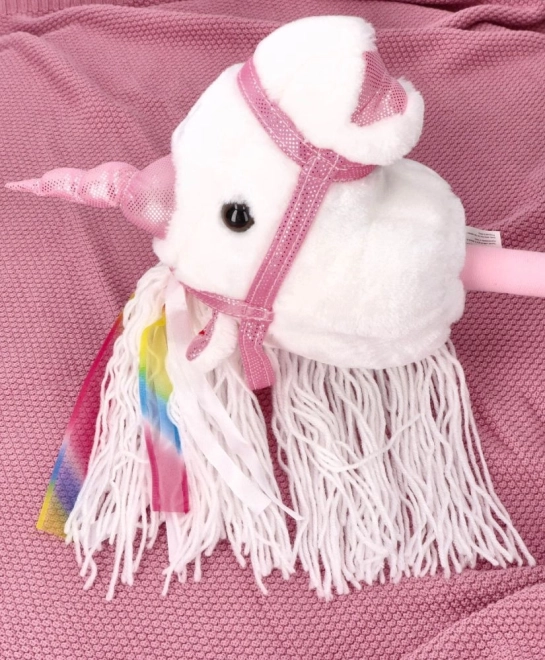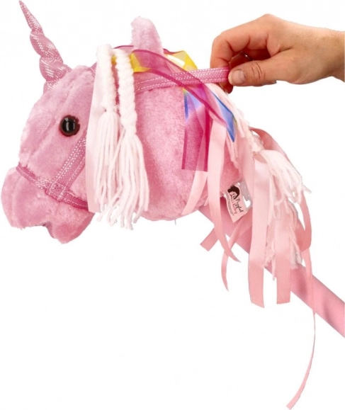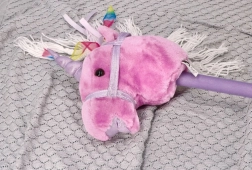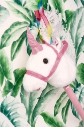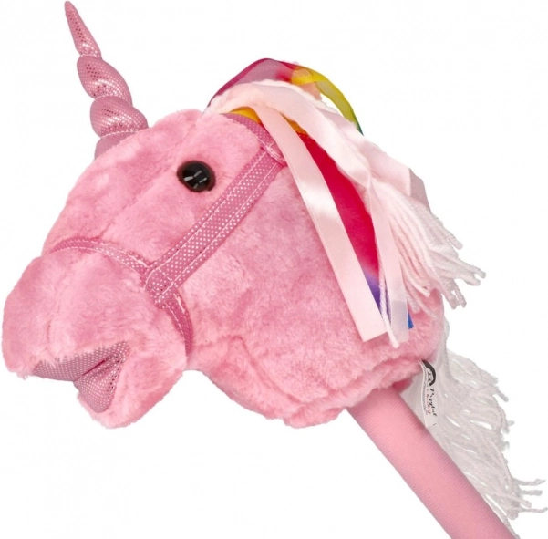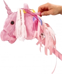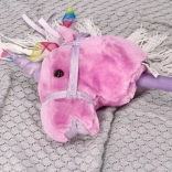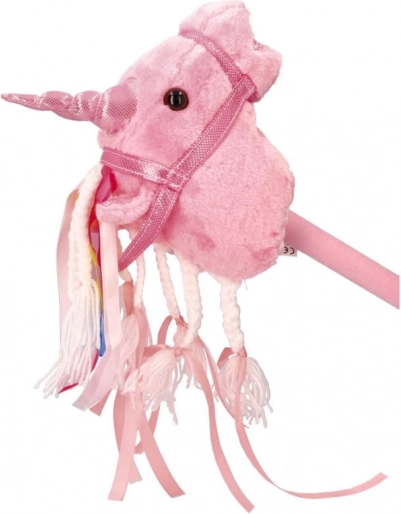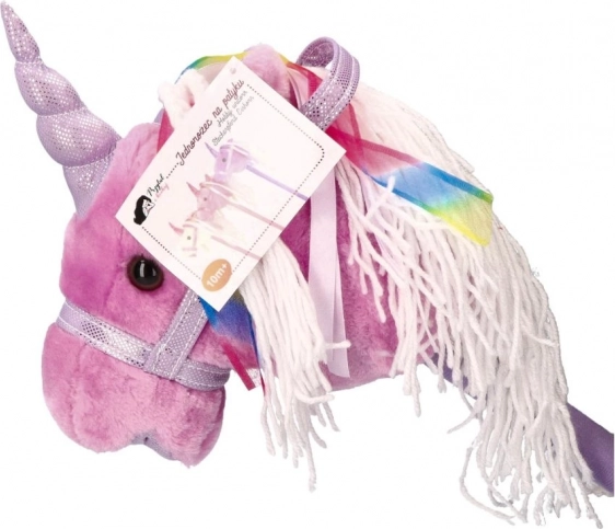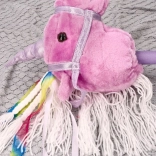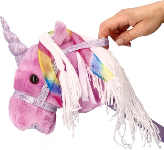 Jednorożec z dumą prezentuje piękną różową głowę i tęczową grzywę, która dodaje magii każdej zabawie.