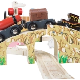 Zestaw wykonany z wysokiej jakości i odpowiedzialnie pozyskanych naturalnych materiałów, uzupełnionych trwałymi elementami z plastiku dla długiej żywotności. Wszystkie części zaprojektowano z naciskiem na bezpieczeństwo i rozwój dziecięcych umiejętności – wspierają wyobraźnię, zręczność i koordynację. W opakowaniu znajdują się wszystkie elementy zgodnie z ilustracją, a zestaw jest kompatybilny z większością klasycznych drewnianych kolejek.
