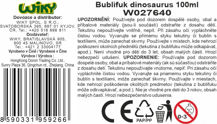 Rozkręć każdą imprezę w ogrodzie, dziecięce party lub popołudnie na placu zabaw z bąbelkami dinozaur. Praktyczne opakowanie o pojemności 100 ml zapewnia długą zabawę i łatwe dmuchanie dużych i małych baniek.