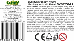 Zabawne bańki mydlane w kształcie krokodyla przynoszą dzieciom godziny zabawy i radości. Dzięki pojemności 100 ml tworzą mnóstwo pięknych baniek, a ich praktyczna długość ok. 36–37 cm świetnie leży w dłoni. Dostępne w 4 wesołych kolorach – różowym, niebieskim, żółtym i zielonym.