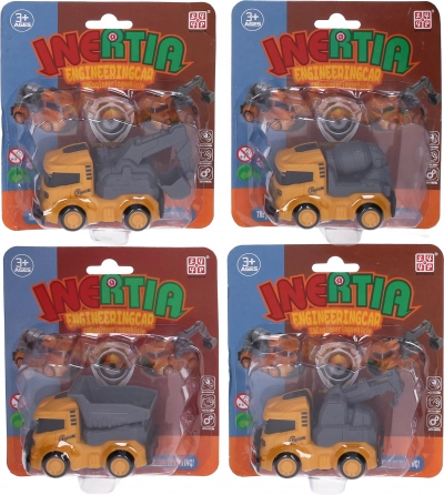 Kompaktowy samochód budowlany z napędem ciernym ucieszy małych budowniczych realistycznym wyglądem i łatwą obsługą. Oferuje cztery popularne warianty – wywrotka, betoniarka, żuraw i koparka. Dzięki wymiarom 8,5 × 5 × 5,5 cm idealnie leży w dziecięcej dłoni i świetnie nadaje się do zabawy w domu i w podróży.
