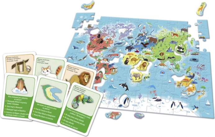 Świat jest pełen ciekawostek! Odkrywaj je wszystkie, układając puzzle mapy świata, bawiąc się figurkami zwierząt i urządzając quizowe pojedynki z przyjaciółmi. Cała seria kart z ciekawostkami o zwierzętach i przyrodzie.