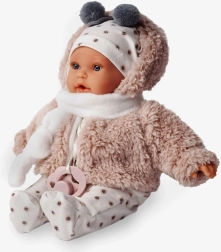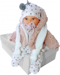 Odkryj urok ręcznie wykonanej hiszpańskiej lalki, która swoimi funkcjami zachwyci każde dziecko. Lalka reaguje na magnetyczny smoczek i wydaje realistyczne dźwięki płaczącego dziecka, które można ukoić. Potrafi także mówić „mama” i „tata”.