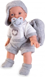Ta mówiąca lalka jest ręcznie wykonana zgodnie z wysokimi standardami ekologicznymi. Przy naciśnięciu brzucha lalka mówi „mama”, „tata” i wydaje realistyczny dźwięk śmiejącego się dziecka.