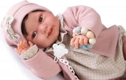 Lalka Pipa wiernie odwzorowuje prawdziwe niemowlę – ma detalicznie opracowane rysy twarzy, ręce i nogi ze specjalnego zmiękczanego winylu przyjemnego w dotyku oraz miękkie materiałowe ciałko dla komfortowego przytulania. Przegubowe mocowanie kończyn umożliwia naturalne pozycjonowanie, w tym samodzielne siedzenie bez podparcia.