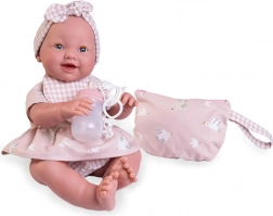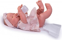 Odkryj urok realistycznej zabawy z lalką MIA od ANTONIO JUAN. Ta mrugająca i siusiająca lalka z całowinylowym ciałem ma delikatne detale noworodka, w tym drobne fałdki i odwzorowane genitalia. Wykonana z zmiękczanego winylu, przyjemnego w dotyku, z akcesoriami do zabawy w opiekę – napełniana butelka i dwie jednorazowe pieluszki. Wysokość 42 cm, idealna dla małych opiekunów od 3 lat.