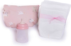 - Lalka, napełniana butelka, 2 jednorazowe pieluszki, pudełko prezentowe