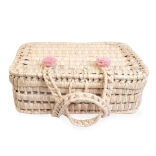 Ta ręcznie pleciona walizeczka z suszonych liści palmowych jest piękna, lekka, a jednocześnie wytrzymała. Dzięki materiałowym przegródkom utrzymuje wszystko w porządku na swoim miejscu, a dzieci łatwo zabiorą ją wszędzie ze sobą. Naturalny materiał i staranne wykonanie czynią z niej zrównoważony i stylowy wybór do dziecięcych zabaw.