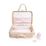 Stylowa wiklinowa walizeczka z wyposażeniem dla lalki marki ANTONIO JUAN jest idealna dla małych opiekunek. Oferuje praktyczne przegródki, ekologiczne wykonanie z naturalnych materiałów oraz podstawowe akcesoria dla niemowlęcia – butelkę, smoczek i jednorazową pieluszkę. Doskonała w podróży, na spacery i jako koszyk piknikowy.