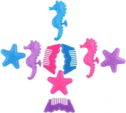 W zestawie znajdują się 3 akcesoria (grzebyk, rozgwiazda, konik morski), które poszerzają możliwości zabawy i rozwijają motorykę małą.
