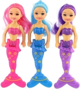 Laleczka jest dostępna w 3 wariantach kolorystycznych (różowy, niebieski, fioletowy) z detalicznie zdobionym ogonem i wyrazistymi włosami. Dzięki rozmiarowi 15 cm łatwo mieści się w plecaku i idealnie sprawdzi się w podróży, w wannie i w dziecięcym pokoju.