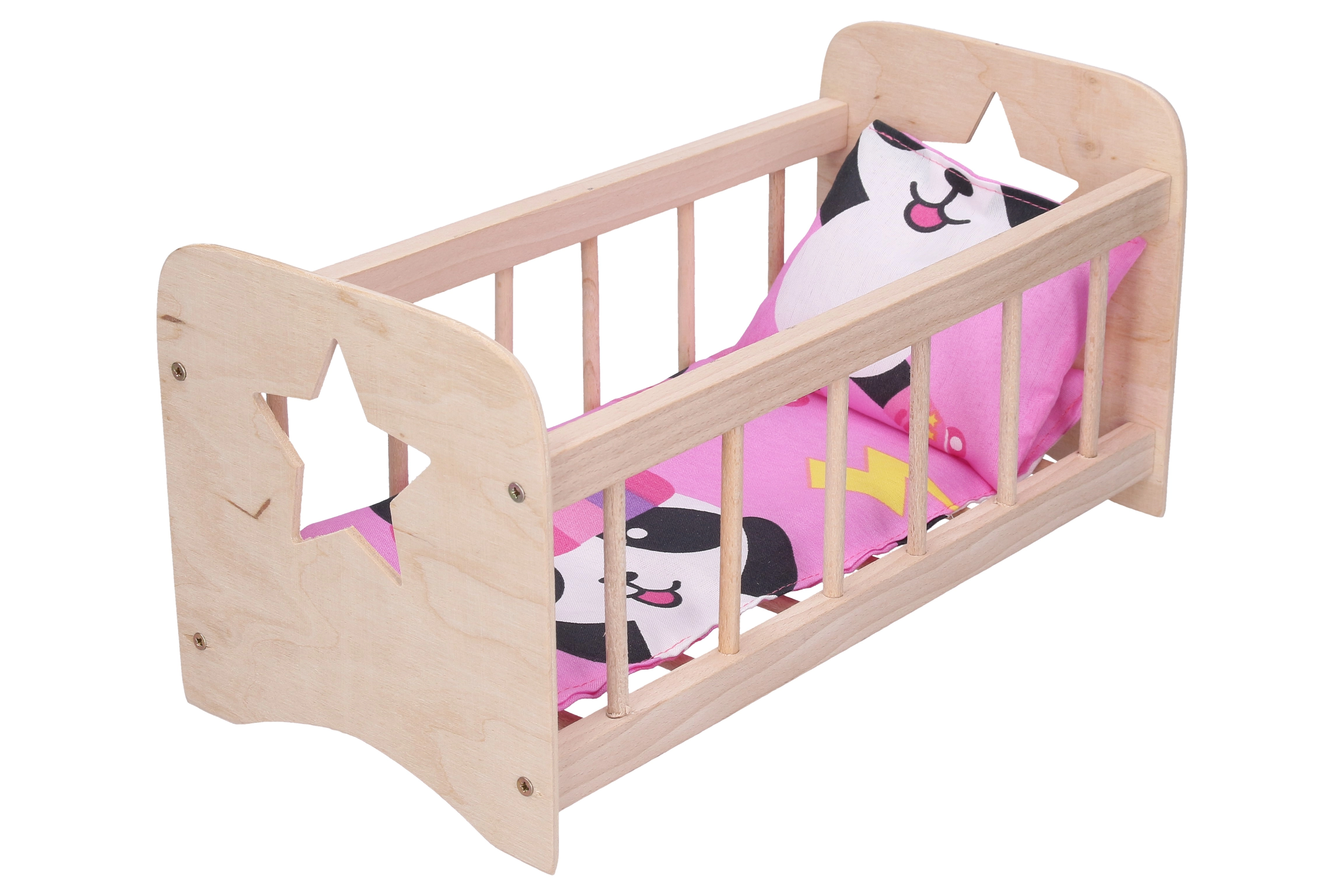 To drewniane łóżeczko dla lalek to doskonały wybór do zabaw w opiekę i usypianie ulubionych lalek czy pluszaków. Dzięki naturalnemu wyglądowi i trwałej konstrukcji świetnie wpasuje się w każdy dziecięcy pokoik i wytrzyma codzienną zabawę.