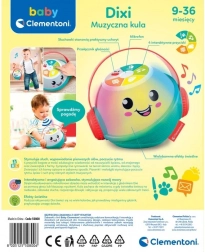 Dixi muzyczna kula to sympatyczna interaktywna przyjaciółka do pierwszego odkrywania świata dźwięków, słów i rytmu. Dzieci mogą wybierać z 4 klawiszy o różnych tematach – pogoda, kolory, zwierzęta i ich odgłosy – które wspierają rozwój mowy i percepcji. Wesołe piosenki oraz różne gatunki muzyczne przynoszą mnóstwo radości i zachęcają do powtarzalnej zabawy.