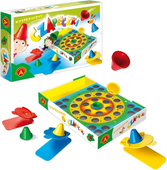 Odkryj świat precyzji i rozrywki z grą Wystrzeliwane czapeczki. Gracze używają katapult do wystrzeliwania czapeczek w otwory na tarczy, co wymaga umiejętności i koordynacji. Idealna dla 1–4 graczy od 5 lat.