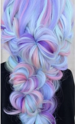Pastelowe przejście kolorów nadaje fryzurze nowoczesny wygląd i wyraźnie podkreśla warkocze oraz plecione upięcia.