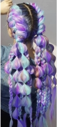 Dodaj swojej fryzurze wyrazisty efekt dzięki długim syntetycznym włosom ombre w pastelowym fioletowo–niebieskim. Są lekkie, miękkie i przyjemne w dotyku, idealne do warkoczy, fryzur imprezowych i codziennego noszenia. Łatwo się przypinają i zdejmują, nie obciążają naturalnych włosów, a dzięki odpornemu na wysoką temperaturę włóknu można je stylizować i pielęgnować bez wysiłku.