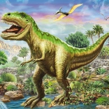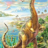 Imponujący prehistoryczny pejzaż z zauropodem motywuje dzieci do odkrywania i rozwija cierpliwość podczas układania.