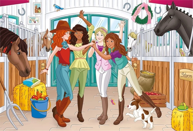 Ten zestaw puzzli SCHMIDT oferuje cztery pięknie ilustrowane sceny z końmi i amazonkami ze świata SCHLEICH HORSE CLUB. Dzięki różnym poziomom trudności (60 i 100 elementów) dzieci mogą stopniowo się rozwijać i spędzać godziny na kreatywnej zabawie.