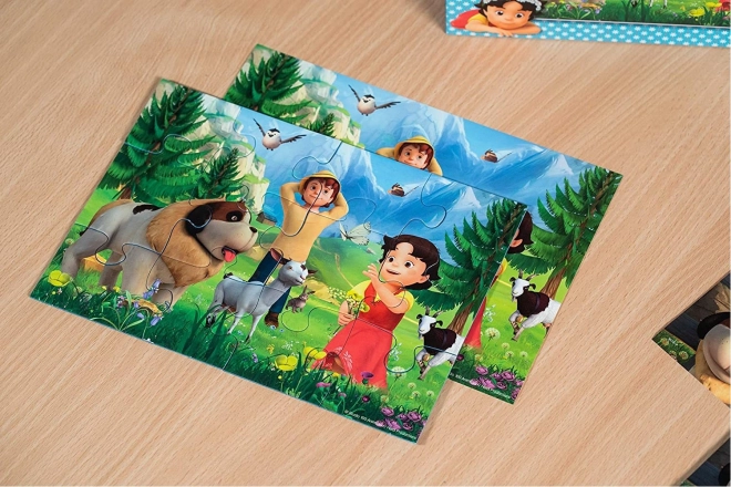 Odkryj urok gór z HEIDI w tym uroczym zestawie puzzli, idealnym na pierwsze układanki. Dwa oddzielne puzzle w tym samym formacie pozwalają dzieciom ćwiczyć koncentrację, motorykę małą oraz rozpoznawanie kształtów i kolorów.
