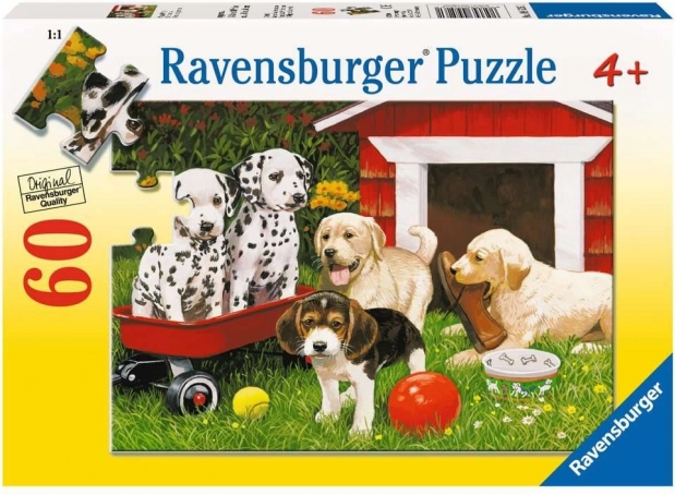 Zanurz się w zabawie z układanką Ravensburger! To puzzle z motywem Imprezy Szczeniąt zawiera 60 elementów i jest idealne dla dzieci i dorosłych, którzy kochają urocze szczeniaczki.