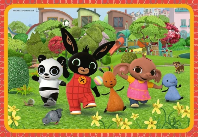Puzzle Bing oferują podwójną zabawę w jednym pudełku. Przeznaczone dla małych dzieci, które lubią układać i odkrywać. Ten zestaw zawiera dwie układanki z motywami ulubionej postaci Bing. Ułożone puzzle mają wymiary około 26 x 18 cm, co jest idealnym rozmiarem do dziecięcej zabawy.